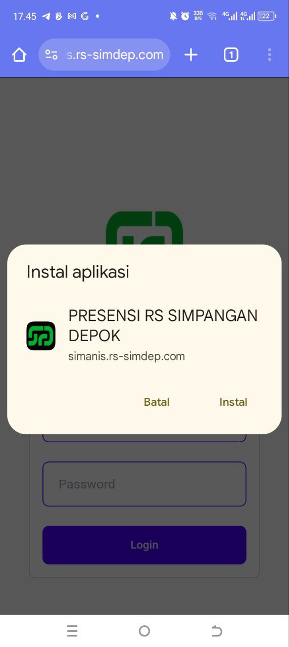 kemuddian cari aplikasi dengan icon logo RS Simpangan Depok ,