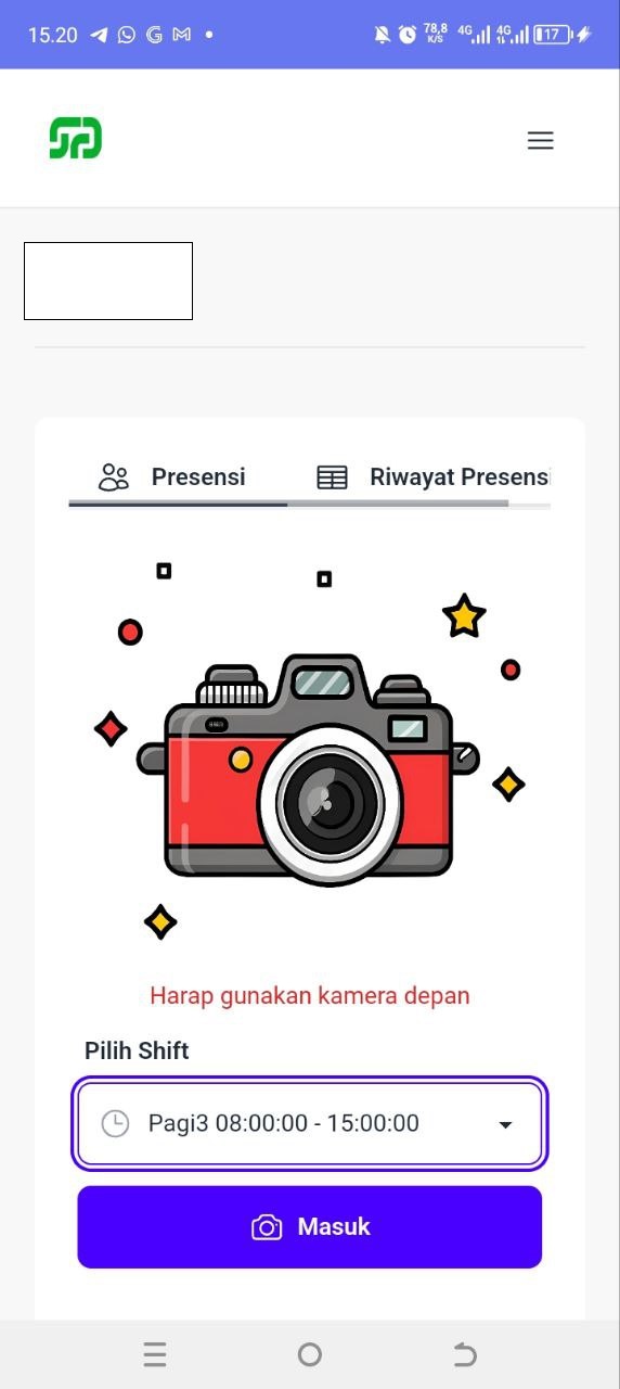 Kemudian, Klik Gambar Camera, dan Pilih Shift sesuai Anda jadwal masuk Anda.